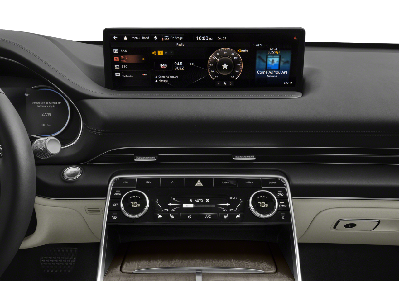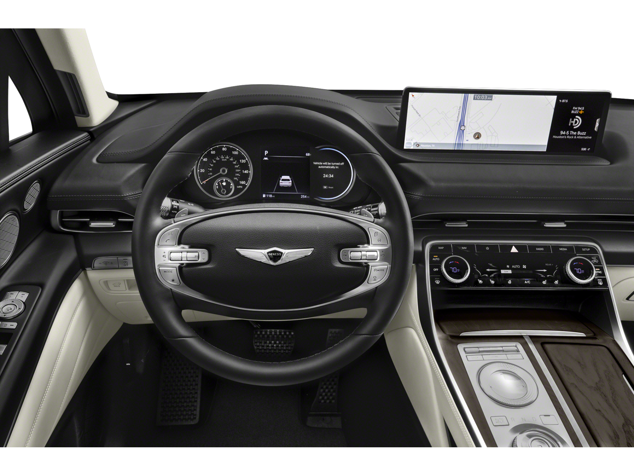 - Radio: AM/FM/SiriusXM/HD Premium Audio System -inc: internal amplifier, integrated navigation, 14.5" HD LCD screen, Apple Carplay and Android Auto, Bluetooth hands-free phone system w/audio streaming, steering wheel controls, 2 front and 2 rear USB ports, 2 12v power outlets, front wireless device charger and Genesis Connected Services