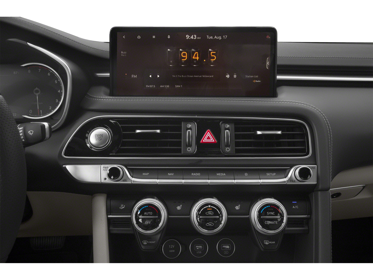 - Radio: AM/FM/SiriusXM/HD Audio System -inc: 6 speakers, 5th generation navigation system w/10.25" touchscreen, dynamic voice recognition, connected routing, over the air updates, Android Auto and Apple CarPlay, Genesis connected services, Bluetooth hands-free phone and audio streaming system and 4 USB ports