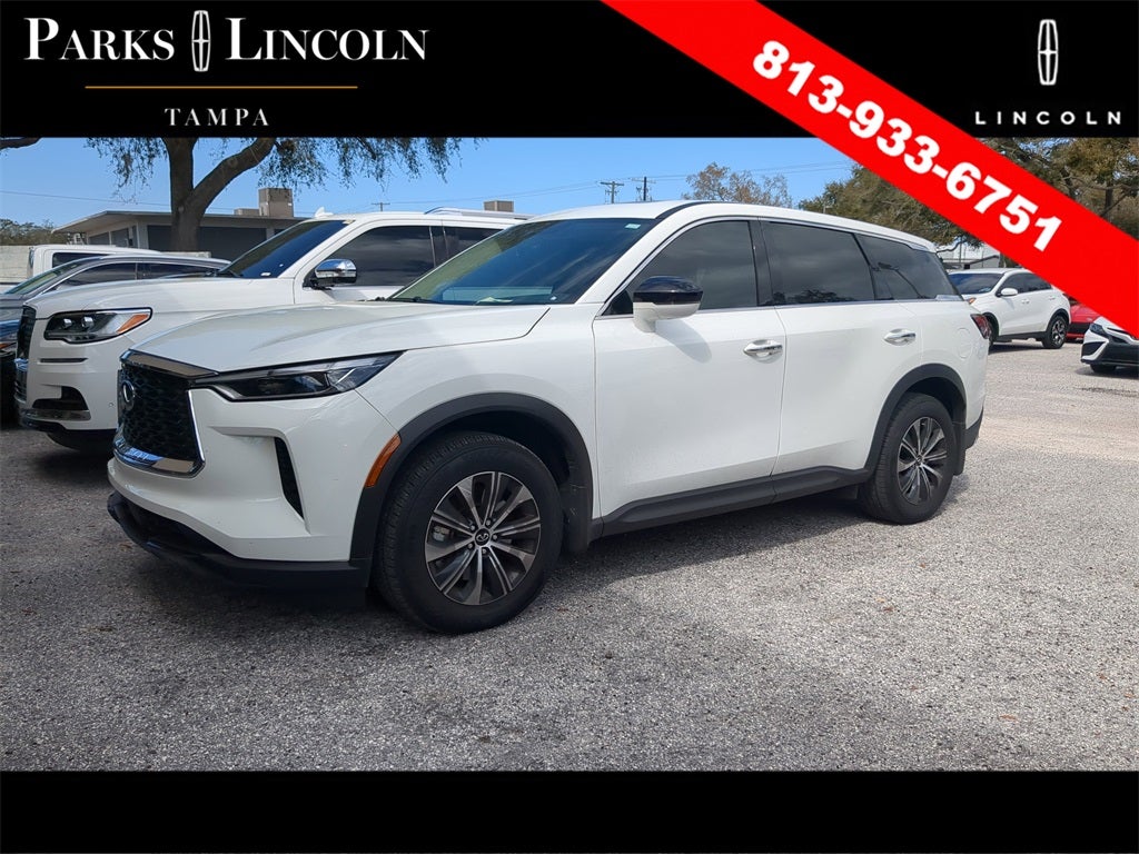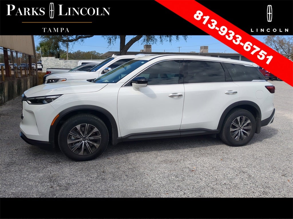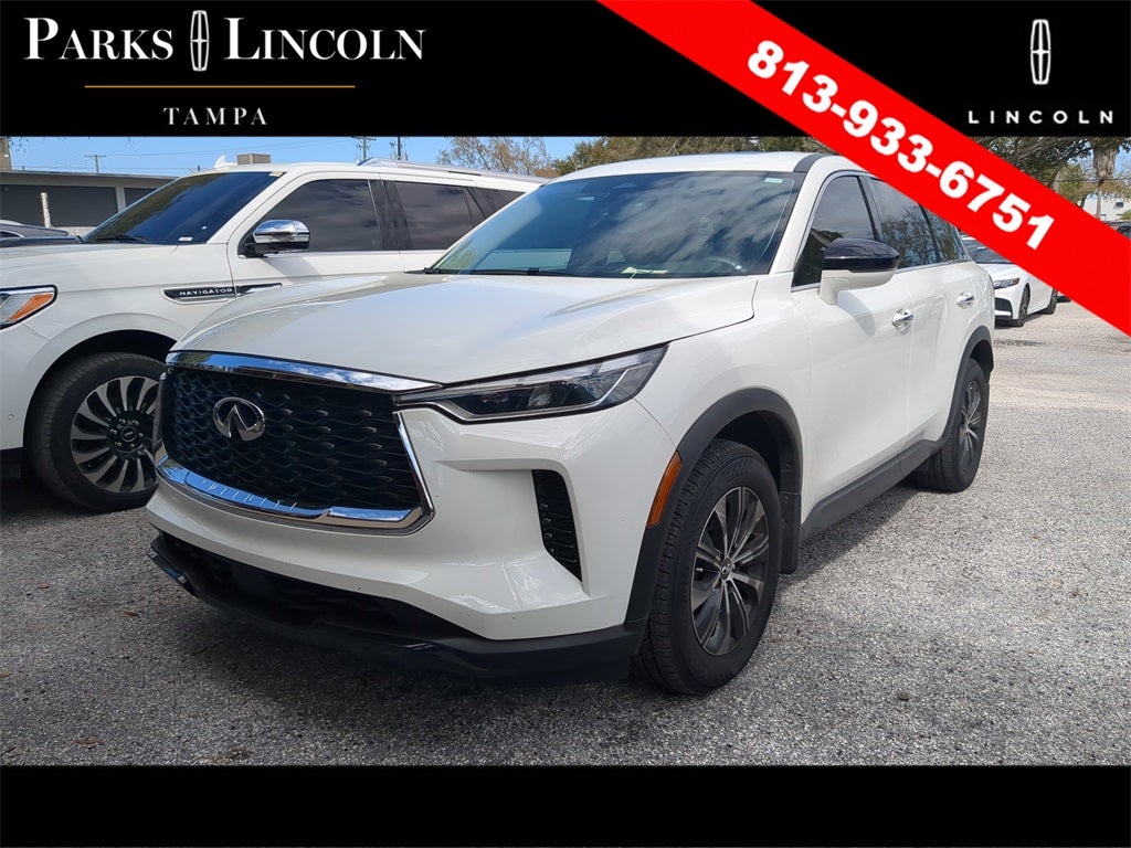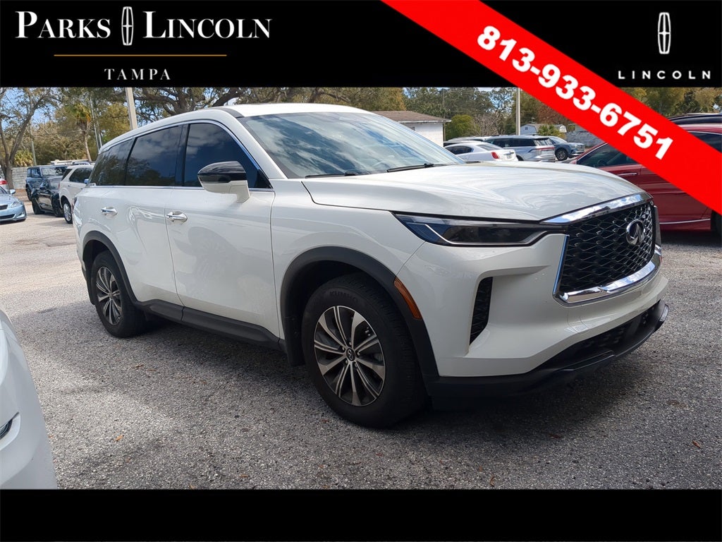 INFINITI QX60 PURE AWD 9-Speed Automatic 2.0L I4 Turbocharged DOHC 16V LEV3-ULEV50 268hp * SUNROOF / MOONROOF, * BACKUP CAMERA, * BLIND SPOT MONITOR, * HD RADIO, * CLEAN CARFAX, * UPGRADED WHEELS, * AWD, *Bluetooth®, *ALLOYS, * UPGRADE AUDIO SOUND SYSTEM, QX60 PURE, 4D Sport Utility, 2.0L I4 Turbocharged DOHC 16V LEV3-ULEV50 268hp, 9-Speed Automatic, AWD, Glacier White, Sandstone Leather, 3rd row seats: bench, 4-Wheel Disc Brakes, Alloy wheels, AM/FM radio: SiriusXM, Auto High-beam Headlights, Automatic temperature control, Blind Spot Warning, Driver vanity mirror, Dual front side impact airbags, Electronic Stability Control, Front dual zone A/C, Fully automatic headlights, Heated door mirrors, Heated front seats, Illuminated entry, Leather-Appointed Seating Surfaces, Low tire pressure warning, Memory seat, Passenger vanity mirror, Power Liftgate, Power moonroof, Power windows, Radio data system, Rain sensing wipers, Rear anti-roll bar, Rear Parking Sensors, Rear window defroster, Speed control, Speed-sensing steering, Split folding rear seat, Steering wheel mounted audio controls, Telescoping steering wheel, Tilt steering wheel, Turn signal indicator mirrors, Variably intermittent wipers.